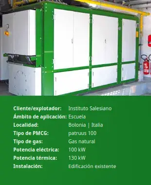 El g-box es la pequeña planta económica de 2G con una potencia eléctrica de hasta 60 kW. El módulo viene listo para la conexión e incluye un gabinete de control con controlador PLC. Esta potente unidad funciona de manera extremadamente eficiente, la salida de bajo ruido la hace adecuada para diversas aplicaciones como: